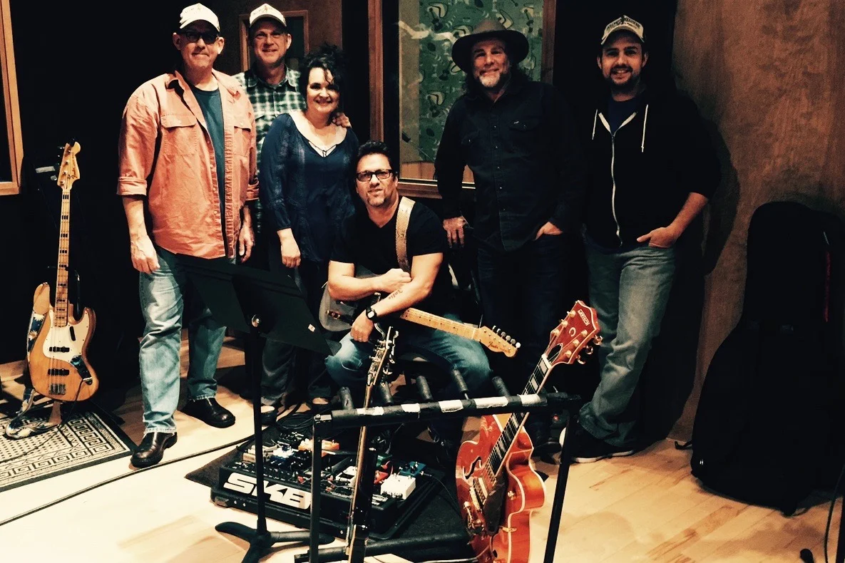 Pictured: Legendary drummer John Hammond and guitarist Brent Mason with Mark, Wanda, Steve and Chris at the end of another tracking day.